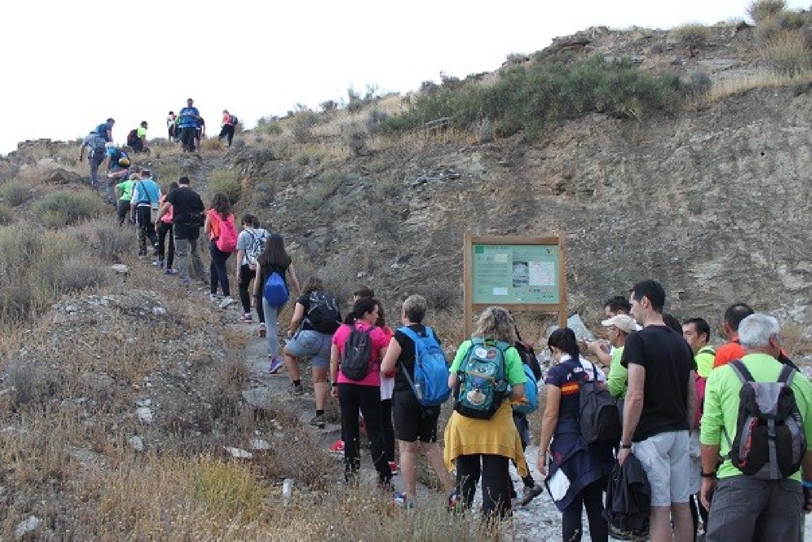 El panel de inicio de sendero lo encontramos saliendo por la parte más alta del pueblo, tomando la antigua carretera AL-840 que unía Macael con la capital de provincia, ya en las afueras del pueblo, en la primera curva que gira a la izquierda.
