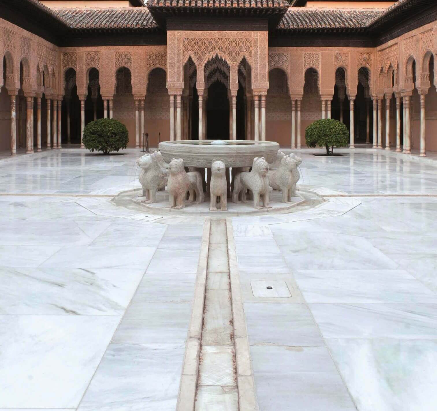 Palacio de la Alhambra, Granada. Fuente y 124 columnas del Patio de los Leones. Solería, escalones, tazas y pilares para resto de fuentes. Siglos XIII - XIV